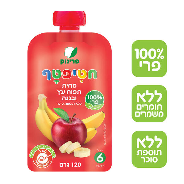 פרינוק חטיפטף פאוץ'' מחית תפוח עץ ובננה 100% פרי