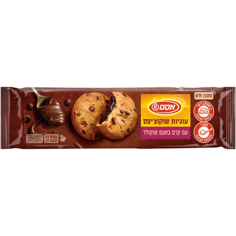 עוגיות שוקולד צ''יפס במילוי קרם שוקולד אסם