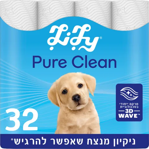 נייר הטואלט לילי PURE CLEAN הרך והמפנק תוכנן להעניק לך תחושה נקייה. טכנולוגיית 3D-WAVE מעניקה לנייר מרקם תלת ממדי ייחודי לניקיון מנצח שאפשר להרגיש