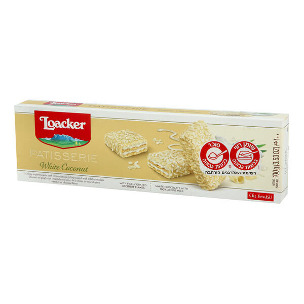 עוגיות וופל גרנד פטיסרי שוקולד לבן וקוקוס לואקר
