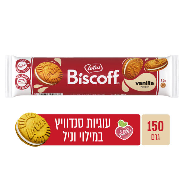 עוגיות סנדוויץ לוטוס בטעם קרמל במילוי וניל 150 ג