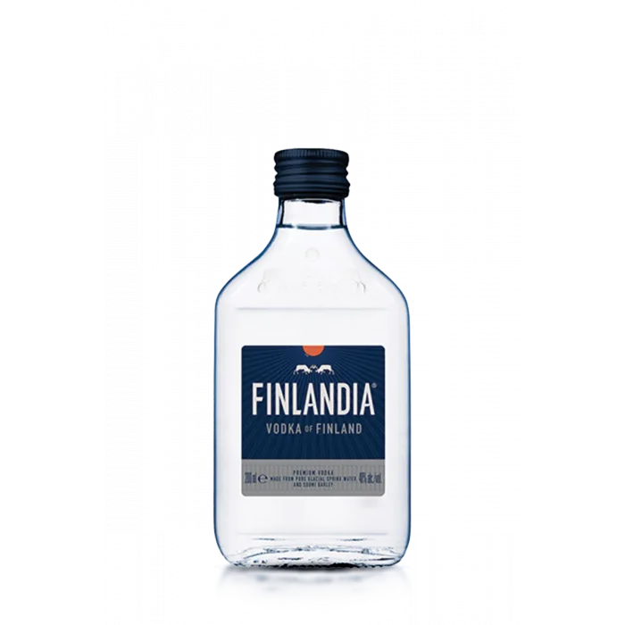 וודקה פינלנדיה הושקה בשנת 1950 ומיוצרת משעורה בעלת 6 שורות גרגרים.מקור המים של הוודקה הוא מאגם הסמוך למזקקה, למעשה כל ה- 2000 דונם סביב האגם בבעלות פרטית של המזקקה וכך הם מוודאים שמקור המים שלהם נשאר נקי וטהור. תכולה: 200 מ''''ל וודקה פרימיום נקיה (ללא ריח או טעם), עגולה וחלקה. וודקה פינלנדיה מופקת בתהליך ייצור קפדני ביותר, הכולל זיקוק וסינון בשיטות ייחודיות ובלעדיות. את המים, המסוננים באופן טבעי, משנעים במיוחד מהקוטב הצפוני ומהכפר ריאמקאי שבפינלנד, והשעורה ממנה מופק המשקה היא בעלת שש שורות גרגירים. בשנת 2011 זכתה פינלנדיה בתואר "הוודקה הנקייה הטובה בעולם"על המזקקה:ראשיתה של וודקה פינלנדיה בשנת 1950. החל מ-1970 היא משווקת ברחבי העולם בהצלחה רבה, ומהווה סטנדרט משל עצמה בכל מה שנוגע לוודקה נקיה. על עיצוב הבקבוקים הייחודי של פינלנדיה אחראים אמני זכוכית פינים ידועים.