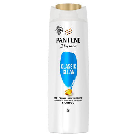 Pantene Pro-v Classic Clean Shampoo with Pro-v Nutrient Blend Formula: Gently cleanses, while fueling hair with active Pro-V Nutrients to help protect your hair, leaving it beautifully healthy looking. This Pantene Classic Clean Shampoo: Provides balanced nourishment for normal to mixed hair. Brings out healthy-looking shine. Leaves hair free-flowing and easy to manage. Pantene Classic Clean shampoo gently cleanses, provides balanced nourishment and brings out healthy-looking shine, Superior Shampoo Formula: fueling hair with active Pro-V nutrients to strengthen hair from the inside-out, Leaves hair free-flowing and easy to manage, Hair Type: this Pantene shampoo is for normal and mixed hair, Good For You And The Planet: 0% mineral oils, 0% colorants and recyclable bottle made with 100% recycled plastic (excluding the cap andamp dyes), Pantene hair product tested by the Swiss Vitamin Institute.