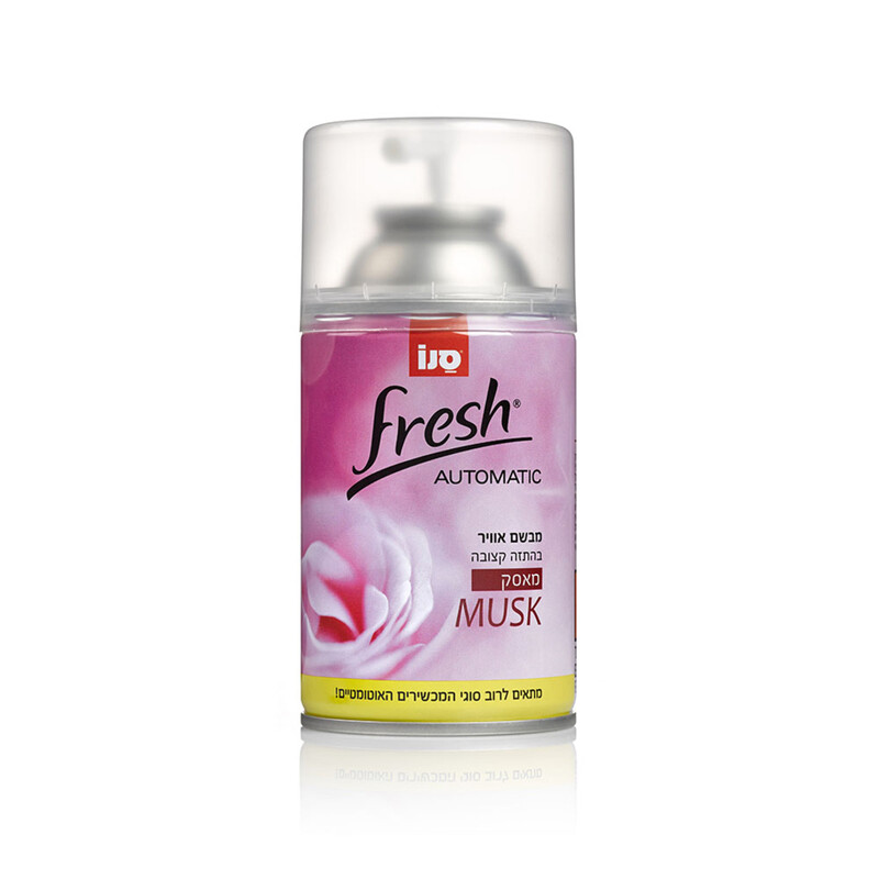 מבשם אוויר בהתזה קצובה בניחוח מאסק. מתאיםלרוב סוגי המכשירים האוטומטיים!